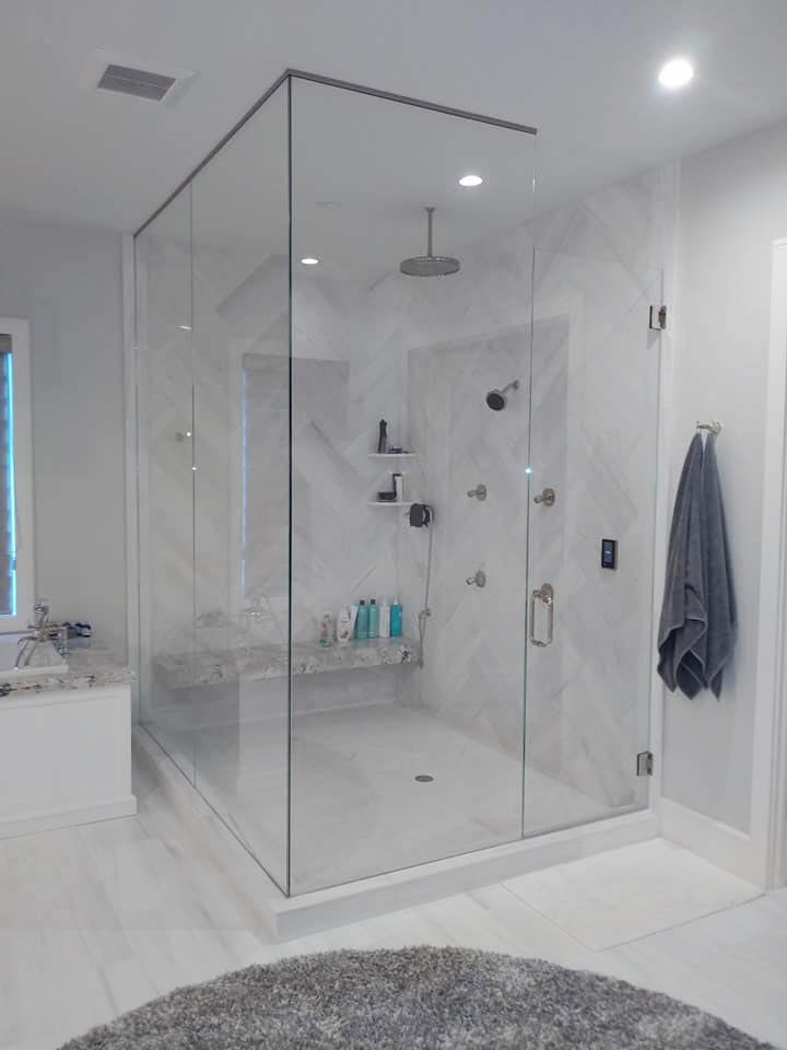 Browse our Idea Gallery to see examples of custom shower enclosures, office partitions, mirrors, glass railings, and decorative glass. Discover innovative designs and expert craftsmanship to inspire your next project.